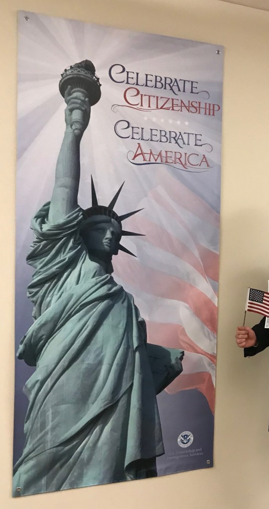 そこで目に飛び込んできた長蛇の列。極寒の中、30分程列に並び、建物への入場順番待ち。セキュリティーチェックを通過し、会場へ。私を含め二十人程だろうか。必要書類とグリーンカードを受付の方へ手渡し、席で待機。グリーンカード取得に相当な費用と労力を要したため、カードを手放すことには抵抗があったが、仕方がない。その後、Oath ceremony開始。出席者全員でOath朗読後、Certificate of naturalization(帰化証明書)を受け取り、セレモニー終了。コロナのため、出席は帰化対象者のみが許可されており、家族、友人、知人等がその場にいないため、出席者同士で互いに記念写真を撮り合う。微笑ましい。